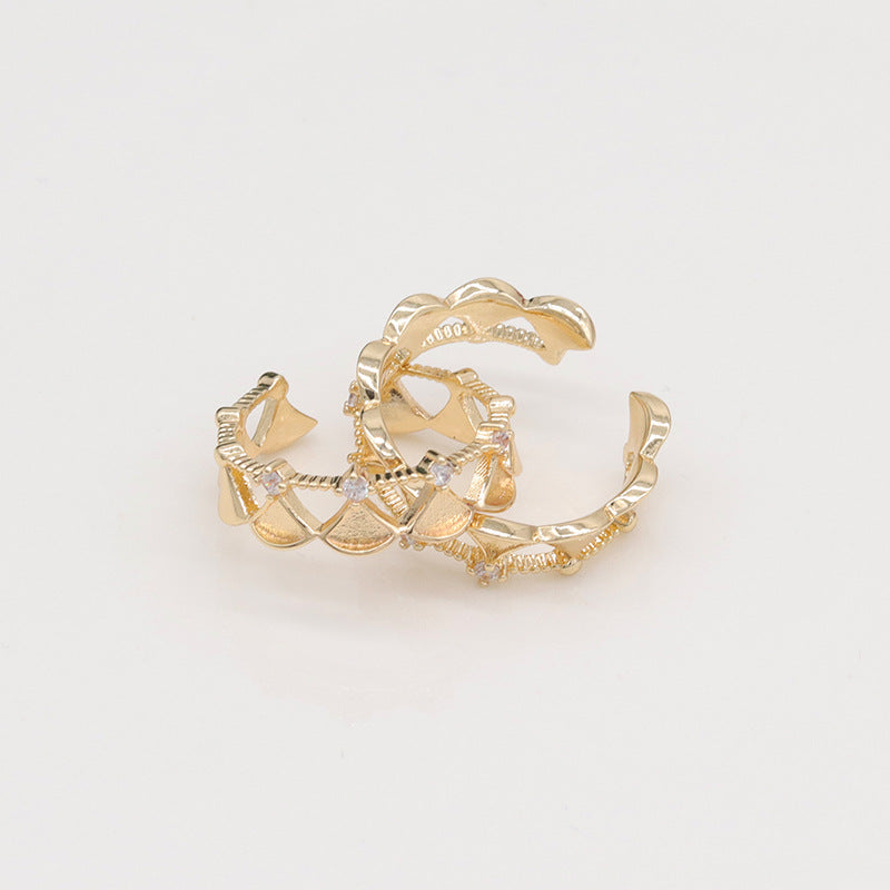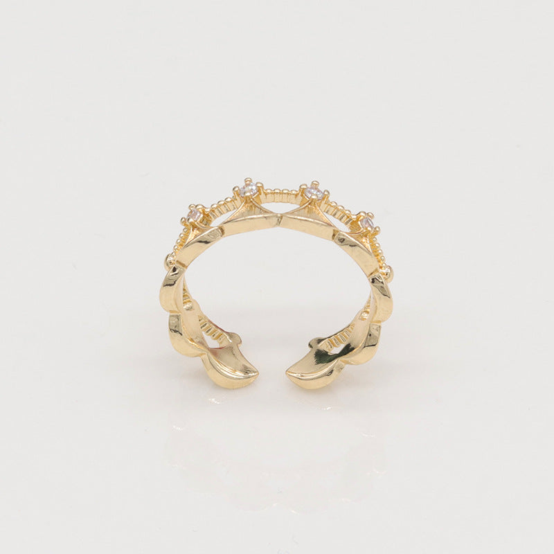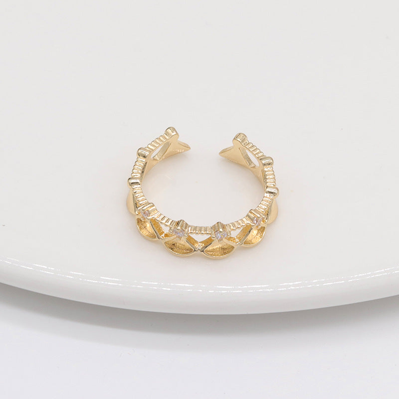 Crown fan-shaped design ring hollow opening