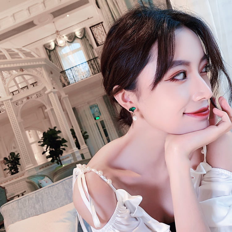 Ginkgo Green Leaf Pearl Girly Elegant Earrings