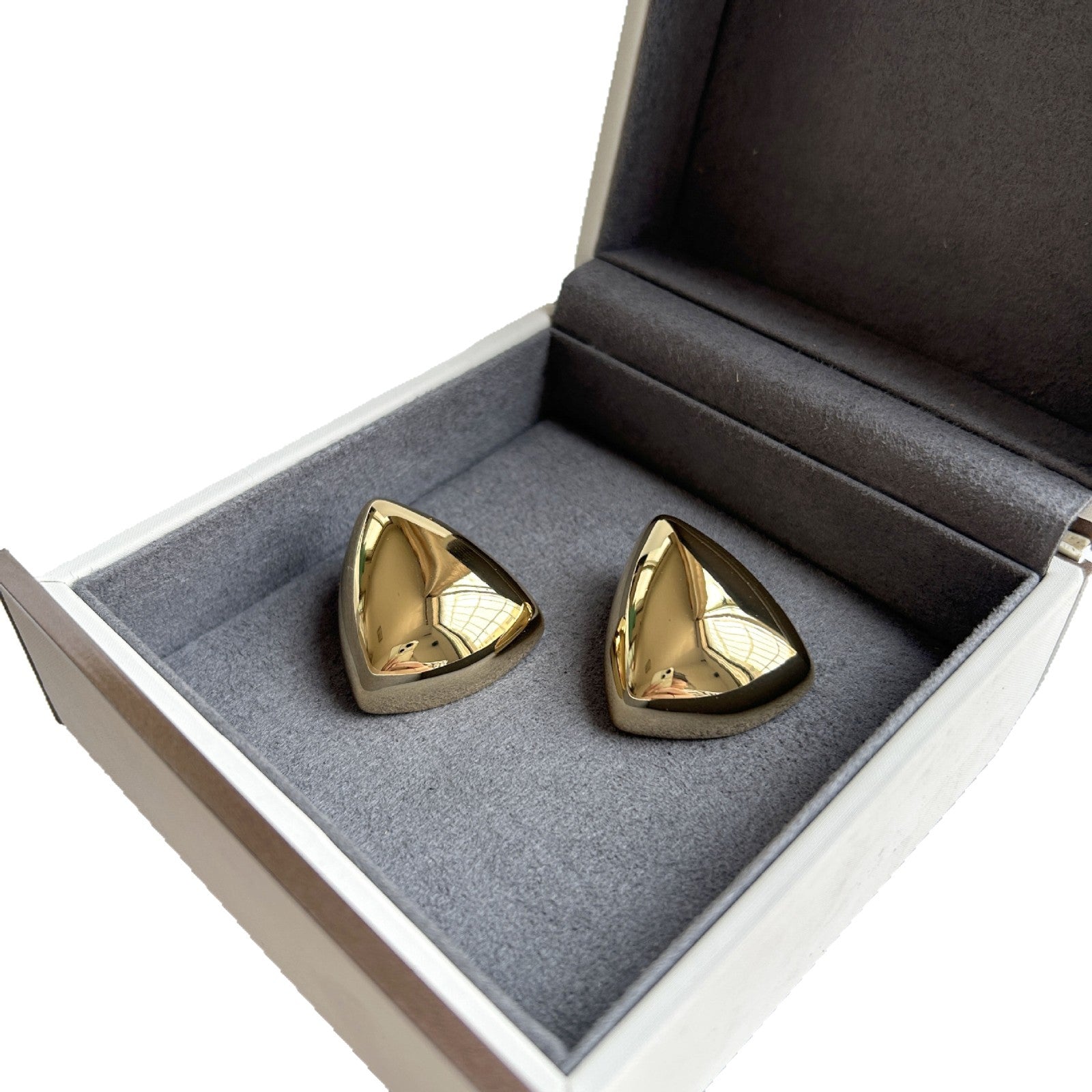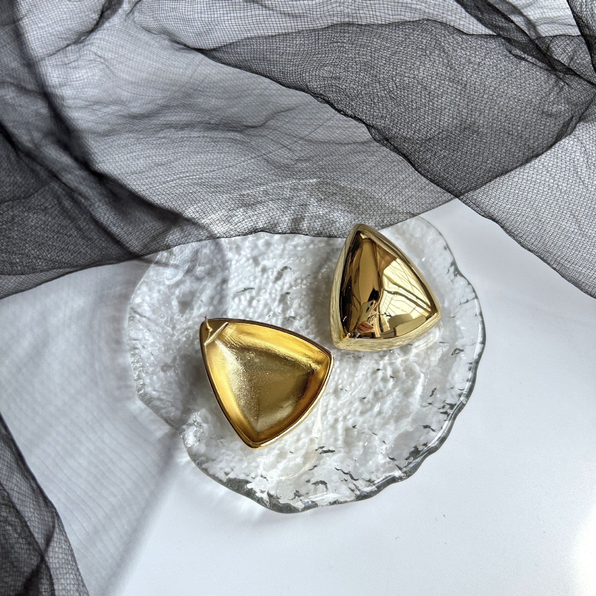 Three-dimensional large triangle earrings